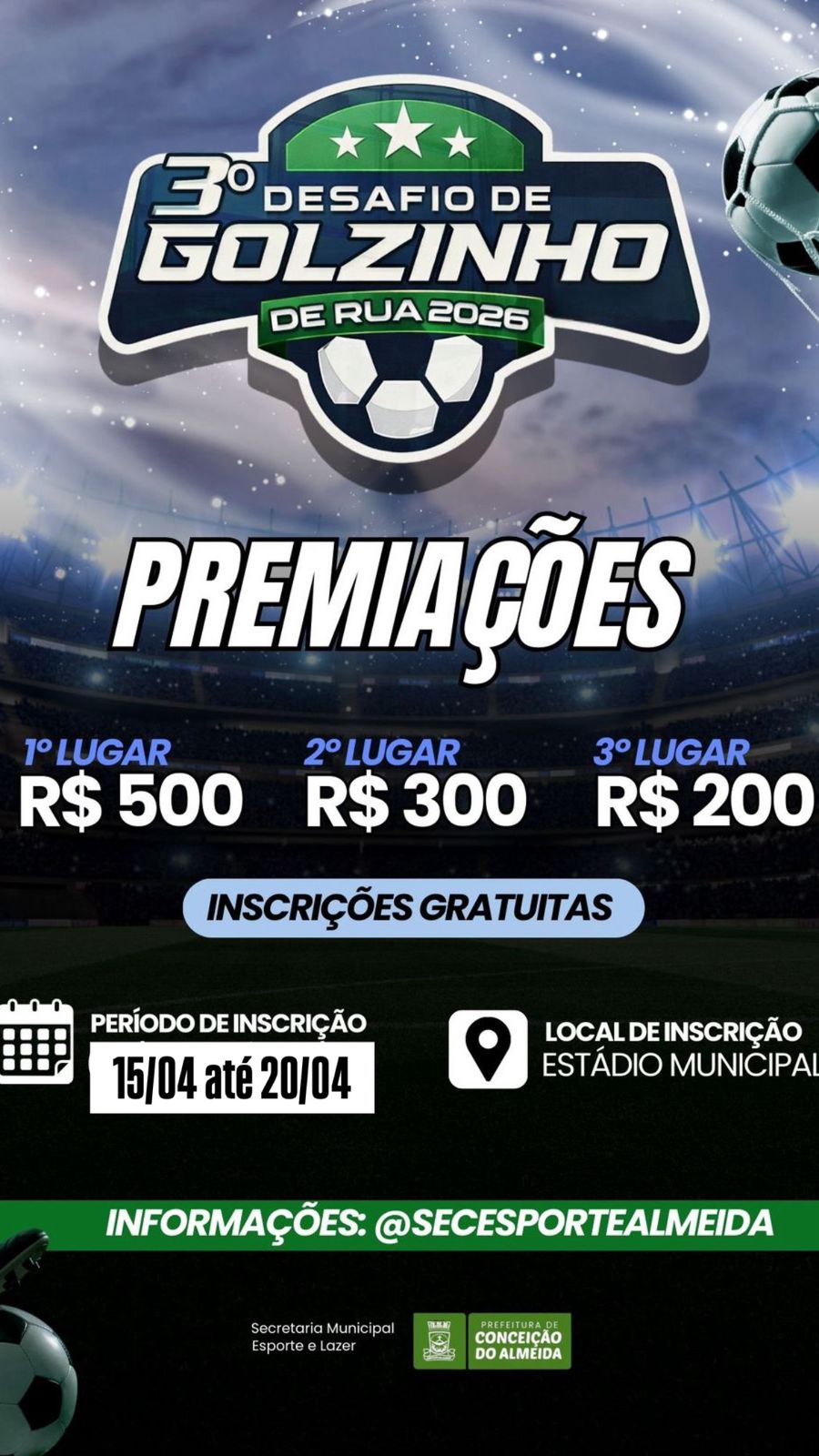 É justamente com este objetivo, que a Prefeitura de Conceição do Almeida, por meio da Secretaria de Esporte e Lazer, sob a direção de Paulo Roberto, mais conhecido popularmente como “Couro” está realizando as incrições desde o dia 15 de abril deste ano, mais uma edição do Projeto Desafio de Golzinho. Esta é a terceira Edição do certame.