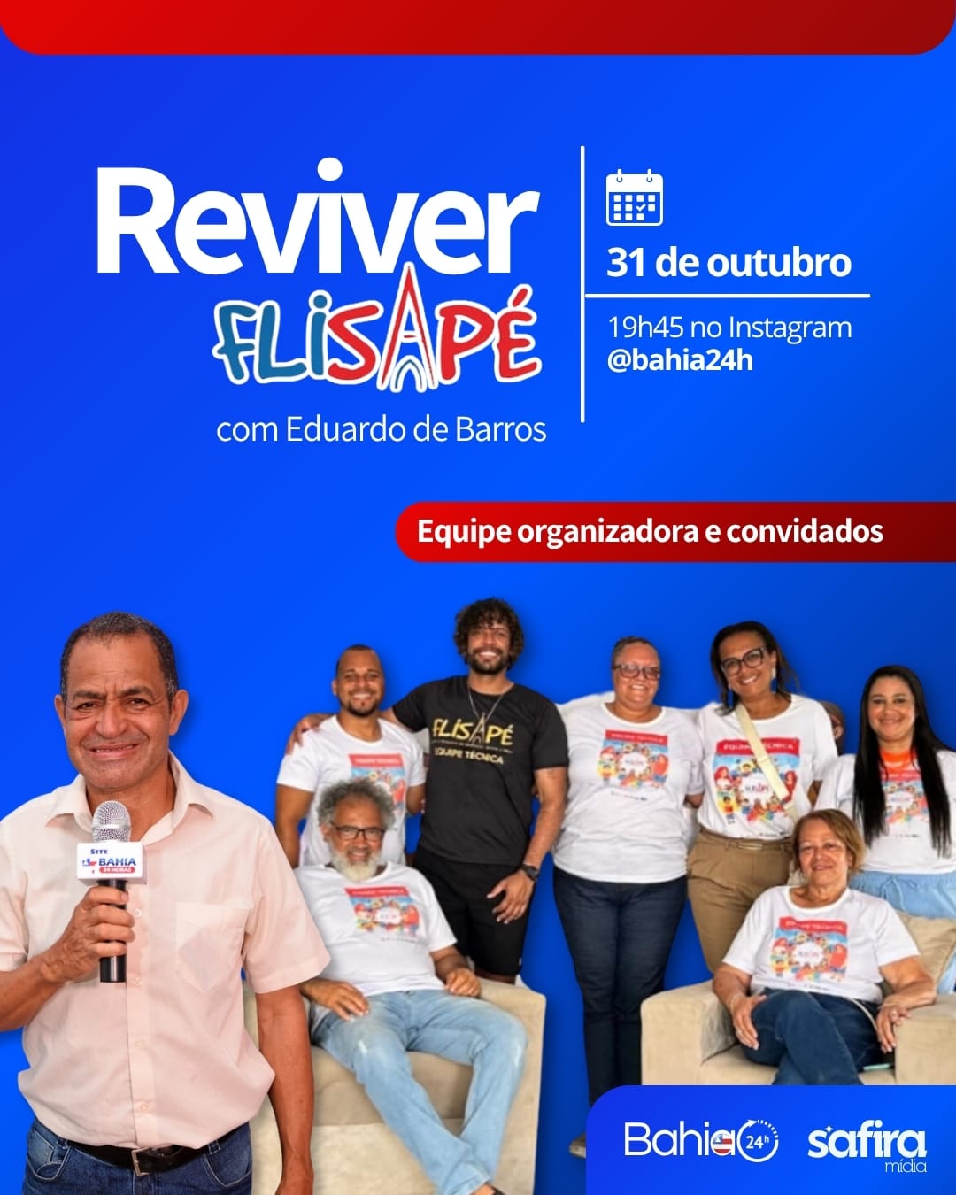 O Site/Instagram, Bahia 24 Horas e a Safira Mídia, vai apresentar a live, Reviver FLISAPÉ, com a equipe organizadora da festa literária, sob o comando da escritora Edelzuíte Ramos e Leila Margareth e com a participação de alguns convidados, como os locutores, Lady Costa, Damião Lopes, Sandro Multi e Jhony Music e também diversas outras personalidades da comunidade Sapeaçuense.